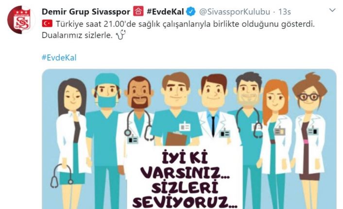 DG Sivasspor Kulübü, sosyal medya hesabından korona virüsü salgını nedeniyle yoğun çalışan sağlık görevlileri için anlamlı bir paylaşımda bulundu.