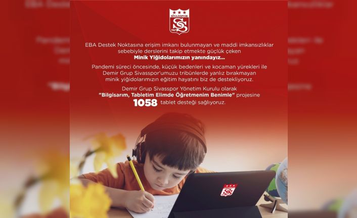 Kulüpten konu ile ilgili yapılan açıklamada, “Maddi imkansızlıklar sebebiyle derslerini takip etmekte güçlük çeken Minik Yiğidolarımızın yanındayız. Demir Grup Sivasspor Yönetim Kurulumuz ’Bilgisayarım ve Tabletim Elimde, Öğretmenim Benimle’ projesine 1058 tablet ile destek sağlama kararı almıştır” ifadesi kullanıldı.