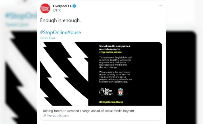 Spor dünyasında son zamanlarda sosyal medyada görülen taciz, ırkçılık ve ayrımcılıktan dolayı önde gelen spor kulüpleri yapılan bu duruma karşı ortak bir tepki vermeye hazırlanıyor. Bu tepki kapsamında sosyal medya üzerinden 4 gün boyunca herhangi bir paylaşımda bulunmayacak olan spor camiasında boykot bugün saat 15.00’te başlayıp, 3 Mayıs Pazartesi 23.59’da sona erecek. Yapılacak bu organizasyonla sosyal medyada yapılan çevrimiçi istismara karşı önlem alınmak isteniyor.