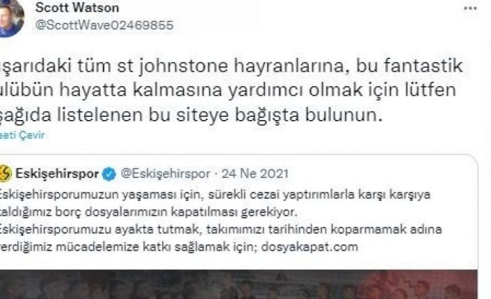 İskoçya Ligi takımlarından St. Johnstone’un taraftarları, zor günler geçiren Eskişehirspor için sosyal medyadan destek çağrısında bulundu.