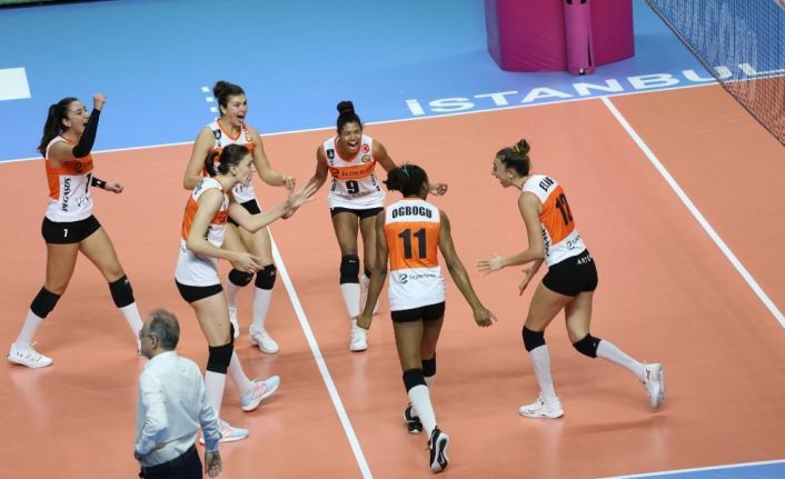 Eczacıbaşı VitrA: Elif, Thompson, Ogbogu, Boskovic, Hande, Beyza, Simge (L), Fatma, Mirkovic, Yasemin.