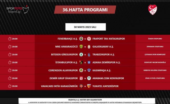 Spor Toto Süper Lig’de 36. hafta programı şöyle:
