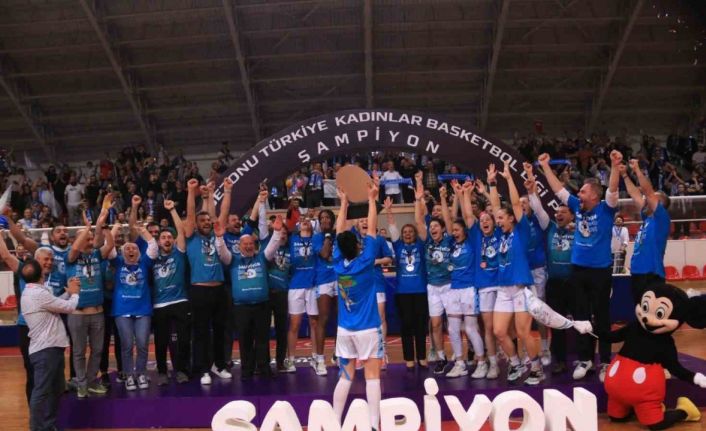 Kadınlar Basketbol Ligi play-off serisinde beşinci maçın son saniyesinde kazanarak Süper Lig’e yükselmeye hak kazanan İzmit Belediyespor gözyaşları arasında kupasını kaldırdı.