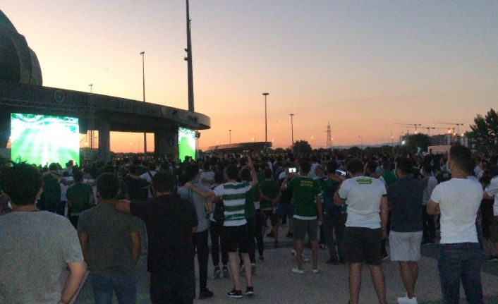 Bursasporlu taraftarlar Büyükşehir Belediyesi’nin kurduğu dev ekranda maç izledi.
