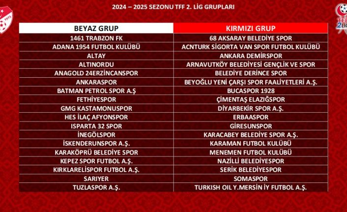 Kura çekimi sonrası TFF 2. Lig’de gruplar şöyle: