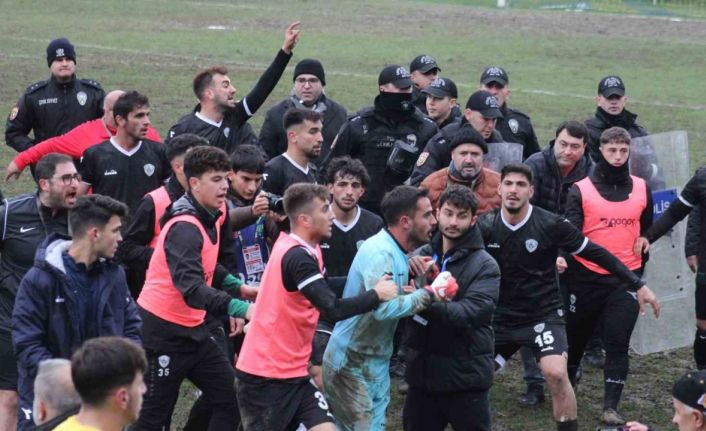 Konuk ekipten Emrullah Ertuş’un tepkisiyle başlayan sözlü, el kol hareketli atışma yedek kulübesine taştı. Ardından kaleci Mustafa Güngör’ün de dahil olmasıyla iki takımın sahadaki oyuncuları arasında kavga başladı. Teknik ekipler, yedek oyuncular ve yöneticiler de sahaya girdi. Tribünlerdeki taraftar da büyük tepki gösterdi ve gerilimin uzaması üzerine sahaya girmek istedi. Ancak emniyet güçleri sahaya inmelerine izin vermedi. Bu dakikalarda maçın hakemleri sahanın uzak bir bölgesine giderek emniyet güçlerinin koruması altına alındı.