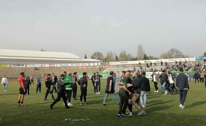 Yalova’da, Sapanca Gençlikspor ile İnegöl Kafkas Gençlikspor arasında oynanan TFF 3. Lig’e yükselme müsabakası sonrasında taraftarların sahaya inmesi sonucu olaylar çıktı.
