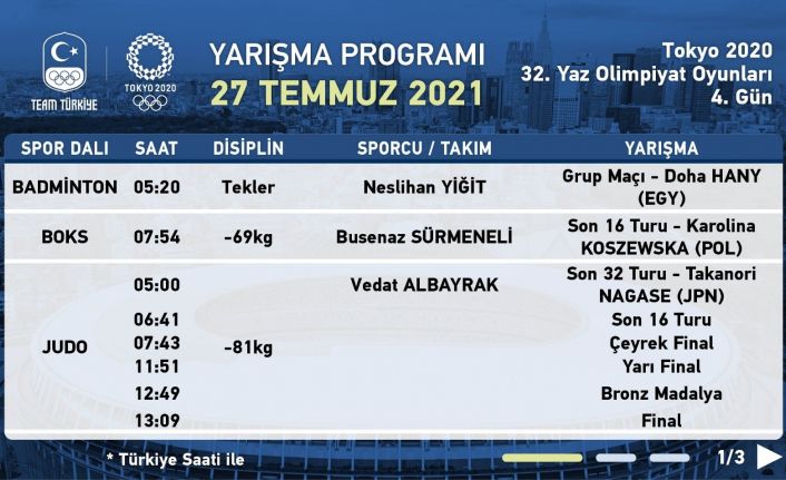 Tokyo 2020 Olimpiyat Oyunları’nda bugün milli sporcular boks, judo, taekwondo, yelken ve yüzme dallarında yarıştılar.