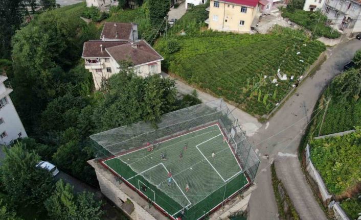 Trabzon’un Of ilçesindeki Ağaçseven Mahallesi’nde iki katlı çay alım merkezinin çatısına yaptırılan mini halı saha, gençlerin oyun alanı olu. Mahallede bulunan Kur’an kursuna giden öğrenciler, çıkışta vakitlerini halı sahada futbol oynayarak değerlendirirken, sahaya ait görseller sosyal medyada da ilgi görüyor.
