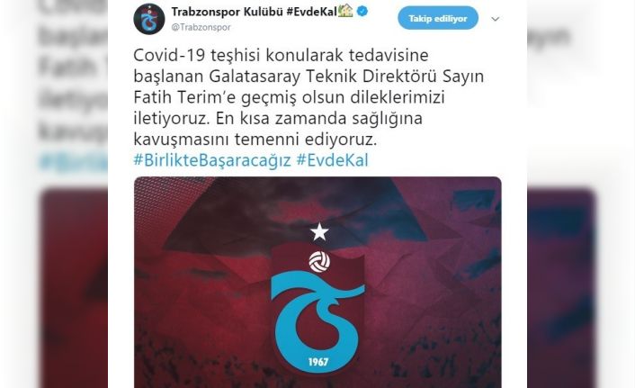 Trabzonspor Kulübü, korona virüse yakalanan Galatasaray Teknik Direktörü Fatih Terim için geçmiş olsun mesajı yayımladı.