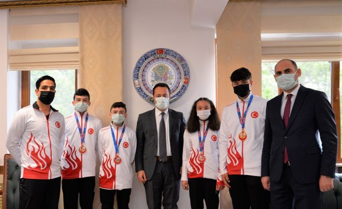 Vali Şentürk, dereceye giren sporculara ve antrenöre, ödüllerini verdi.