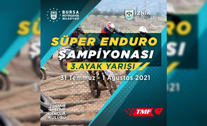 Bursa Büyükşehir Belediyesi koordinasyonunda, İznik Belediyesi, Türkiye Motosiklet Federasyonu, Gençlik ve Spor Hizmetleri Dairesi Başkanlığının katkılarıyla düzenlenen Türkiye Süper Enduro Şampiyonası’nın üçüncü ayak yarışı, 31 Temmuz-1 Ağustos tarihlerinde İznik Elbeyli Er Meydanı’nda yapılacak. Şampiyonanın üçüncü ayağı, 31 Temmuz Cumartesi günü saat 13:30’da Millî İrade Meydanı’nda (İznik merkez) yapılacak magazin startı ile başlayacak. Aynı gün Elbeyli Er Meydanı’nda serbest antrenman ve sıralama yarışları düzenlenecektir. 1 Ağustos pazar günü ise final yarışında Elbeyli Er Meydanı’nda sporcular ekstrem parkurda hem engel hem de rakipleriyle mücadele edecek.