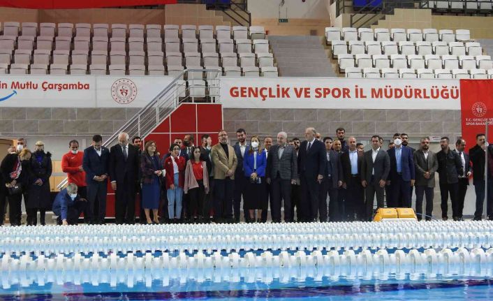 Bakan Kasapoğlu ile protokol üyeleri kurdele kesiminin ardından yüzme havuzunu gezdi. Havuzda yüzen sporcularla bir araya gelen Kasapoğlu, hatıra fotoğrafı çektirdi.
