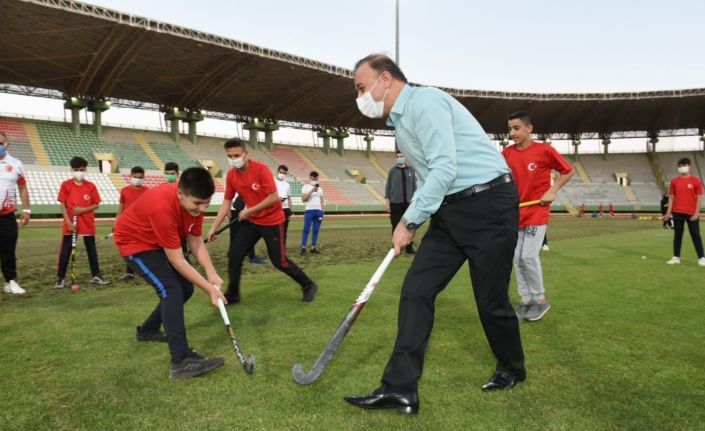 Saat 19.19’da İstiklal Marşı’nın okunmasının ardından sporcu gençlerle sohbet ederek bayramlarını tebrik eden Vali Erin, daha sonra gençlerle kısa bir çim hokeyi maçına katıldı. Gençlerin sporla iç içe bir hayat sürmesinin önemine değinen Vali Erin, genç sporculara başarılar diledi.