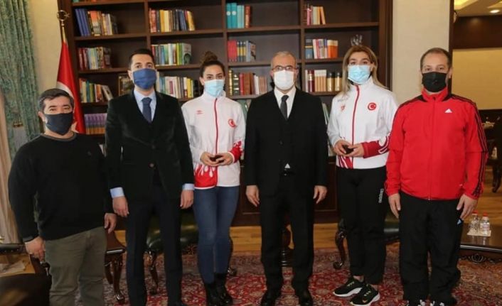 Elazığ Valisi Dr. Ömer Toraman, Kırşehir’de düzenlenen U22 Büyükler Ferdi Boks Türkiye Şampiyonası’ndan madalyayla ayrılan Elazığlı sporcular, 63 kilo Türkiye Şampiyonu Gizem Özer, 81 kilo Türkiye ikincisi Mihriban Güneri, antrenörleri Cemil Döndü ve Atalay Şenbakar’ı makamında kabul etti. Sporcuları ve antrenörlerini elde ettikleri derecelerden dolayı kutlayan Vali Toraman, başarılarının devamını diledi.