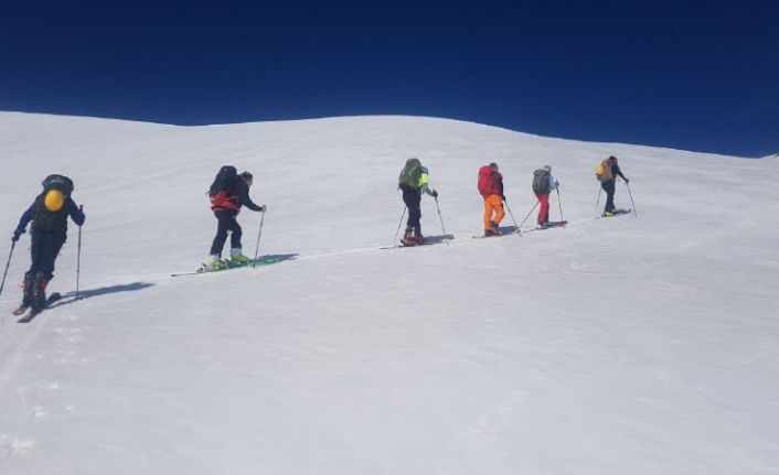 Türkiye Dağcılık Federasyonu’na kayıtlı dağcılar, bölgeye dikkat çekmek için Van Gölü Havzası’ndaki dağlara tırmanarak kayak yaptı.