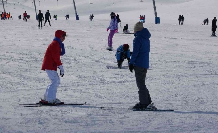 Van’ın Gevaş ilçesinde bulunan Abalı Kayak Merkezi’nde ilk kez kayakla tanışan çocuklar, yarıyıl tatilinde eğlenceli vakit geçiriyor.