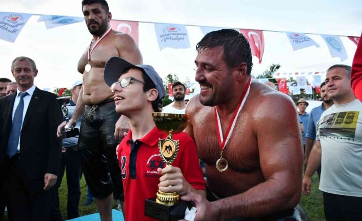 Tekirdağ’da 56. Uluslararası Kiraz Festivali çerçevesinde düzenlenen Hüseyin Pehlivan Yağlı Güreşleri’nde şampiyon olan Recep Kara, kupasını Engelli Giray’a hediye etti.