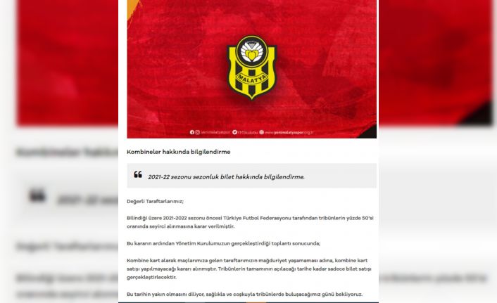 Yeni Malatyaspor, tribünlerin tamamının açılacağı tarihe kadar kombine bilet satışının gerçekleştirilmeyeceğini açıkladı.