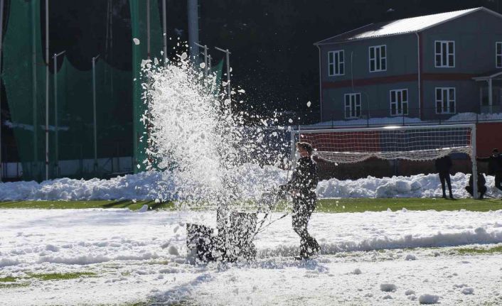 Zeminde gerçekleştirilen kar küreme çalışmaları ise bugün 13.00’de oynanacak maça kadar tamamlanamadı. Maçın hakemi Süleyman Bahadır ve yardımcıları maç saatinde zemine çıkarak incelemelerde bulundu. Sahanın müsabaka oynanmasına müsait olamaması nedeniyle maçı ertelediğini açıkladı.