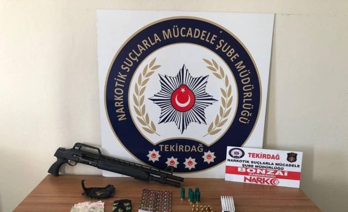Çorlu Narkotik Suçlarla Mücadele Grup Amirliği görevlileri tarafından Çorlu ilçesi Hıdırağa Mahallesi’nde sokak satıcılarına yönelik yapılan çalışmalar kapsamında şüpheli M.K. isimli şahsın ikametinde arama gerçekleştirildi. Yapılan aramalarda 20 gram sentetik kannabinoid (bonzai), 1 adet ruhsatsız av tüfeği ve bu tüfeğe ait fişekler, 15 adet tabanca mermisi ile uyuşturucu madde satışından elde edildiği değerlendirilen 160 TL para ve 3 adet çeyrek altın ele geçirildi.