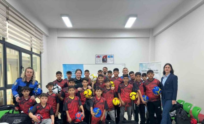 Tekirdağ Emniyet Müdürlüğü, Süleymanpaşa Belediyesi ile birlikte dezavantajlı çocuklar için el ele verdi. Emniyet Genel Müdürlüğünün yürüttüğü “Gelecek Seninle Güzel, Bizimle Güvende” isimli proje kapsamında; Süleymanpaşa Belediyesi Aydoğdu Mahallesi Gençlik ve Kadın Yaşam Merkezinde eğitim desteği alan dezavantajlı öğrencilere futbol topu, forma ve spor malzemesi desteğinde bulunan Tekirdağ İl Emniyet Müdürlüğü, çocuklara futbol kursu imkânı da sağlamaya başladı.