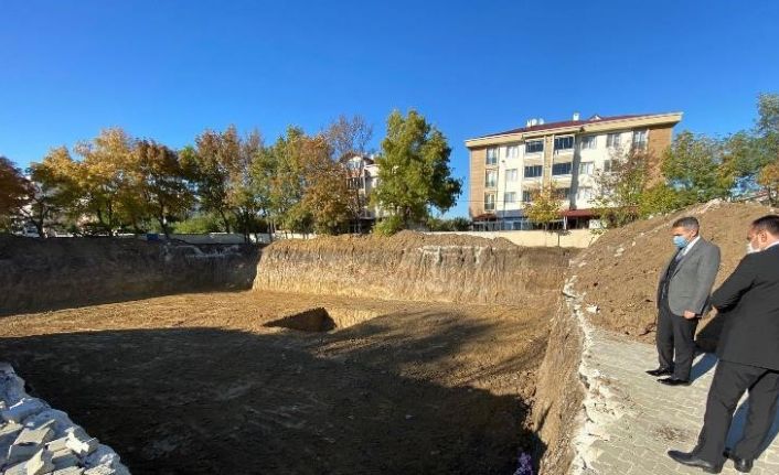 Ergene Kaymakamı Taşçı, ilçenin Marmaracık Mahallesinde yapımına başlanan 16 derslikli ilk ve ortaokul binası inşaatında incelemelerde bulundu.