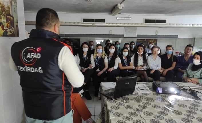 Tekirdağ İl Afet ve Acil Durum Müdürlüğü eğitmen personellerince, özel hastanelere yönelik afet eğitimi veriliyor.