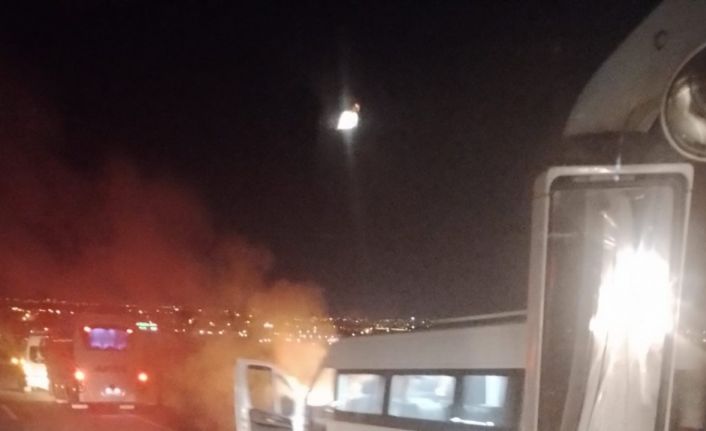 İşçi servis minibüsü alev aldı