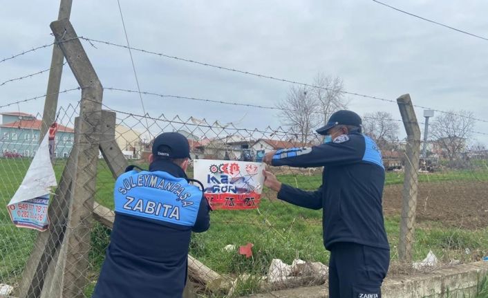 İlçe genelinde izinsiz reklam ve ilan görsellerinin asılması ile ilgili uygulama yürüten Süleymanpaşa Belediyesi Zabıta Müdürlüğü ekipleri, gerekli izinler alınmadan uygun olmayan yerlere asılan görselleri toplayarak imha etti.