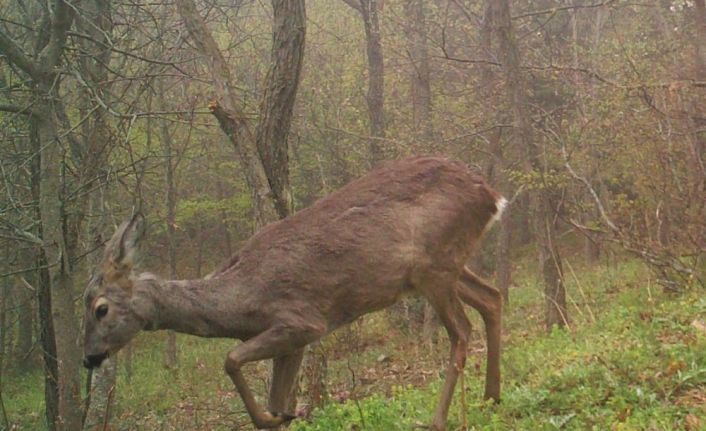 Avrupa ve Türkiye’de en küçük geyik türü olan Karacalar Tekirdağ ormanlarında fotokapana yansıdı.