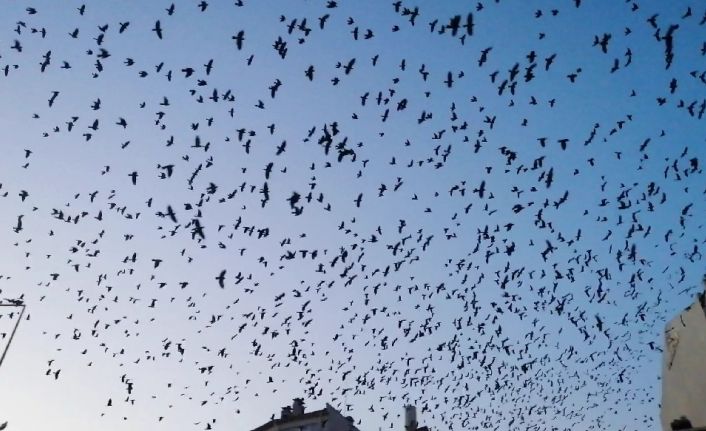 Tekirdağ’ın Hayrabolu ilçesinde karga sürüsü gökyüzünü istila etti.