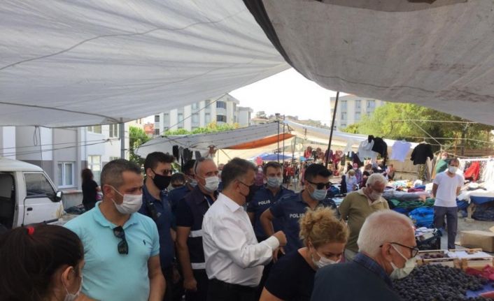 Süleymanpaşa Kaymakamı Harun Kaya nezaretinde gerçekleştirilen ve Süleymanpaşa Belediyesi Zabıta Müdürü Turgut Ünsal’ın da katıldığı denetimlerde, pazarcı esnafı ve vatandaşlara yönelik maske ve hijyen kontrolü gerçekleştirildi.