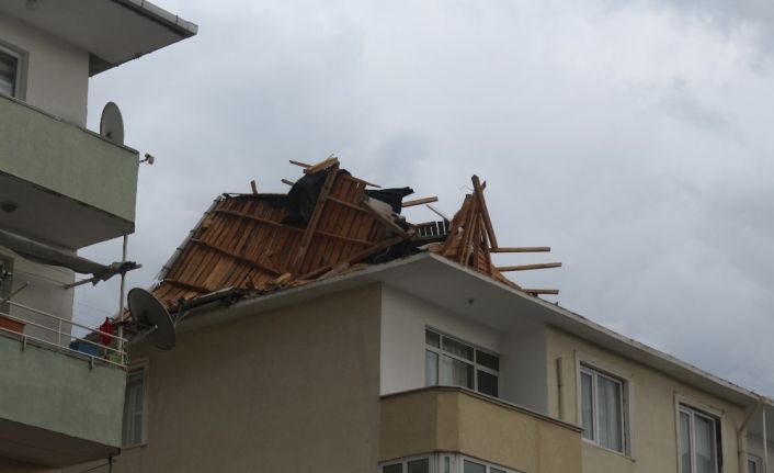 Tekirdağ’da sabah saatlerinde etkisini gösteren şiddetli rüzgar nedeniyle bir apartmanın çatısı uçtu.