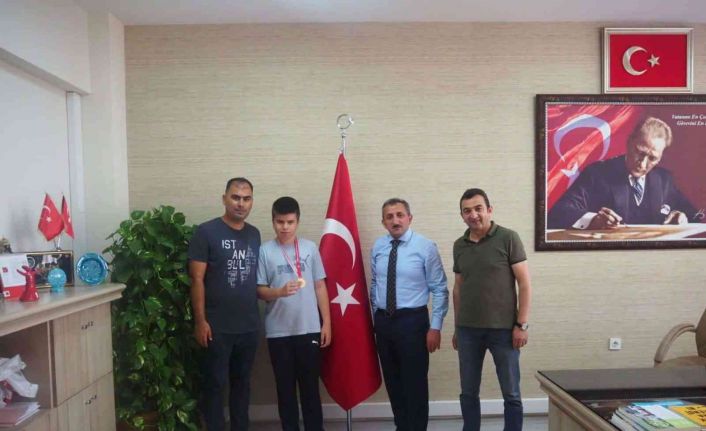 Şampiyon sporcu beraberinde ailesi ve Cumhuriyet Ortaokulu Müdürü Coşkun Şentürk ile Çorlu İlçe Milli Eğitim Müdürü Hüseyin Erdoğan’ı ziyaret ederek başarısını paylaştı.