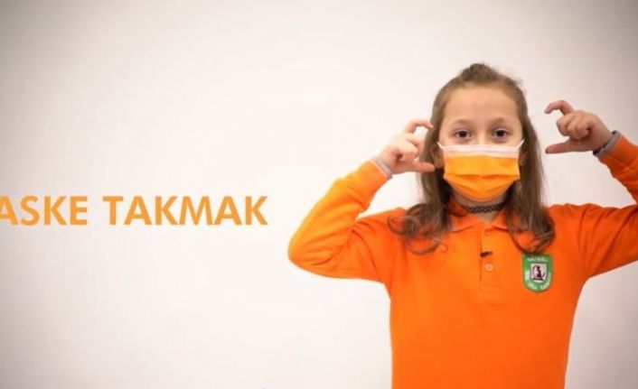 Tüm dünyayı etkisi altına alan ve ülkemizde de görülen Covid-19 salgının en önemli tedbirleri olan temizlik, maske ve mesafe kurallarına daha da dikkat edilmesi için öğrenciler kamera karşısına geçti. Öğrenciler, ‘Keyifli Okul Atölyem’ projesi kapsamında öğretmenleri Havva Hamzalı eşliğinde çektikleri video klipte işaret dili ile temizlik, maske ve mesafe kuralına dikkat çektiler.