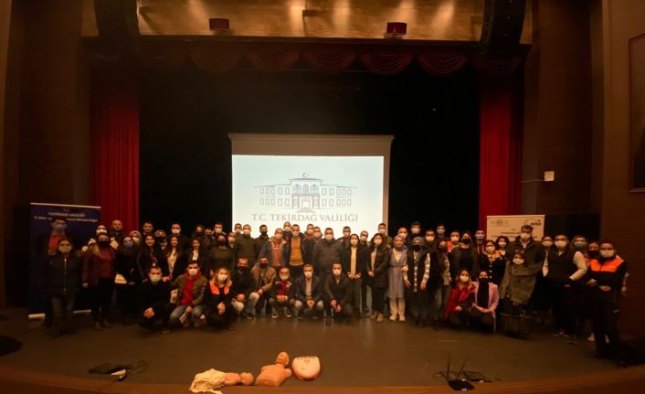 Tekirdağ İl Sağlık Müdürlüğü personeli Erol Ketenci tarafından AFAD gönüllülerine ilk yardım eğitimi verildi. Yahya Kemal Beyatlı Kültür Merkezi Konferans Salonu’nda düzenlenen eğitim, saygı duruşu ve İstiklal Marşı’nın okunması ile başladı. Eğitimin açılış konuşmasını AFAD Müdürlüğü Şube Müdür Vekili Serap Kızılırmaklı yaparak, il genelinden katılan AFAD gönüllülerinin sorularını cevapladı. İlk yardım eğitimiyle gönüllülerin Destek AFAD gönüllüsü olma adımlarından birisi daha tamamlanırken, herhangi bir afet durumuna karşı gönüllüler arama kurtarma konusunda daha bilinçli hale geldi.