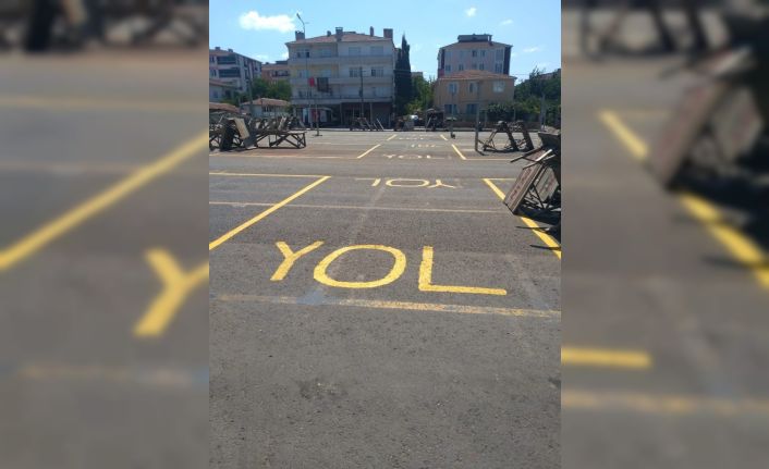Ergene Belediyesi ekipleri Yeşiltepe ve Sağlık Mahallelerinde kurulan semt pazarlarında pazarcı tezgâhları için ayrılan bölümlerde yer çizgisi çalışması yaptı.