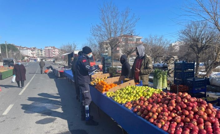 Ergene Belediyesi Zabıta Müdürlüğü ekipleri ilçenin değişik mahallelerinde kurulan pazar yerlerinde pandemiye karşı tedbir almaya devam ediyor.