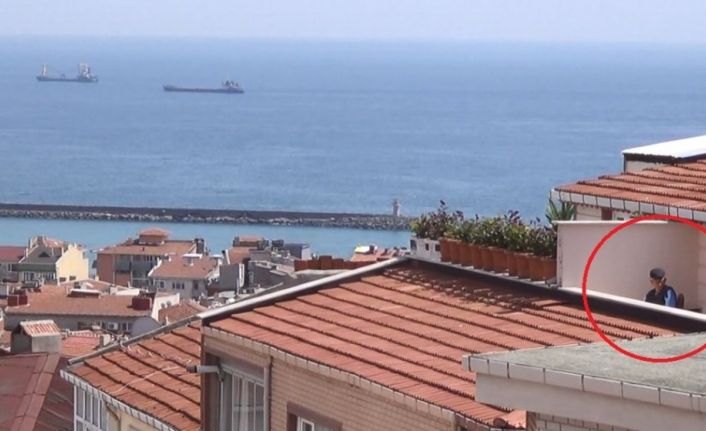 Tekirdağ’da korona virüs nedeniyle hafta sonu uygulanan sokağa çıkma kısıtlamasında yaşlı bir vatandaş, dışarıdaki havanın tadını çıkarmak için çatıdaki deniz manzaralı balkonda saatlerce güneşin altında bekledi.