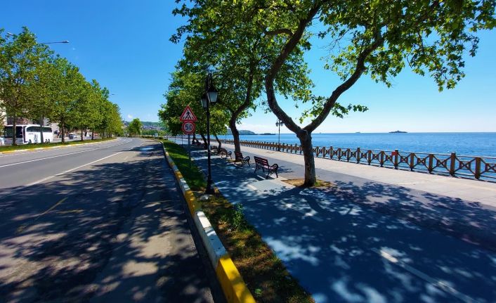 Hafta için vatandaşlarla dolup taşan sahil alan ve yürüyüş alanı da kısıtlama sebebiyle bomboş kaldı. Emniyet Müdürlüğüne bağlı ekiplerde sokaklarda ve yollarda denetimlerini sürdürüyor.