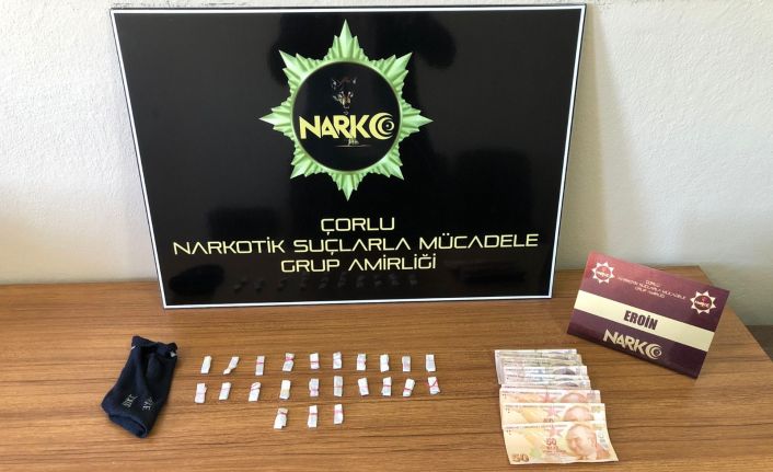 Tekirdağ İl Emniyet Müdürlüğü Narkotik Suçlarla Mücadele Şube Çorlu Grup Amirliği ekiplerince Çorlu İlçesi Hıdırağa (Kore) Mahallesinde uyuşturucu ve uyarıcı madde ticareti yapan şahıslara yönelik yapılan çalışmalar kapsamında tespit edilen bir şahsın üzerinde yapılan aramada, 23 fişek eorin ve uyuşturucu madde satışından elde edildiği değerlendirilen 215 TL para ele geçirildi.