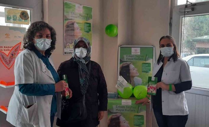 Aile Sağlığı Merkezlerine gelen kadınlara rahim ağızı kanseri, erken tanı ve kanser belirtileri hakkında bilgilendirme, İlçe Sağlık Müdürlüğü görevlileri Nurten Kaynak Göztepe ve Pınar Kahyaoğulları tarafından yapıldı.