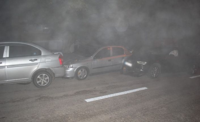 Tekirdağ’ın Malkara ilçesinde yoğun siste kontrolden çıkan bir otomobil park halindeki araçlara çarptı.