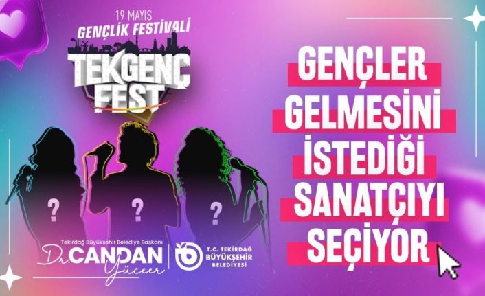 Tekirdağ Büyükşehir Belediyesi’nin TEK Genç Fest için internet sitesi üzerinden başlattığı anket 19 Nisan’a kadar devam edecek. Gençler, festivalde görmek istedikleri sanatçıları doğrudan seçerek organizasyona katkı sunacak. 19 Mayıs Atatürk’ü Anma, Gençlik ve Spor Bayramı kapsamında gerçekleştirilecek festival, gençlerin tercihleri doğrultusunda şekillenecek.
