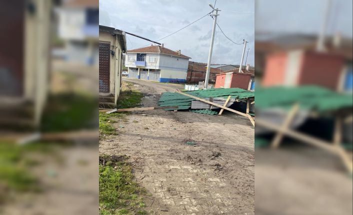 Tekirdağ’ın Hayrabolu ilçesinde şiddetli rüzgar, bir garajın çatısını uçurdu.