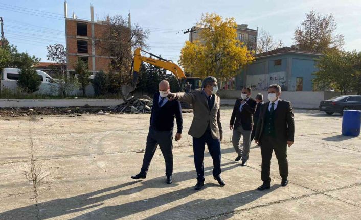 Ergene Kaymakamı Mehmet Emin Taşçı, Ergene İlçe Milli Eğitim Müdürü Özgür Parıltı şube müdürleri Dinçer Tuna ve Erkan Can, inşaatına başlanan okulda incelemelerde bulundular.