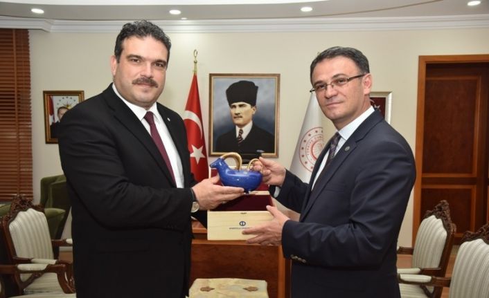 Anadolu Üniversitesi Rektörü Prof. Dr. Şafak Ertan Çomakli, Vali Ozan Balcı’ya Günün Anısına Eskişehir’e Özgü Keçi Riton Figürü Takdim Etti