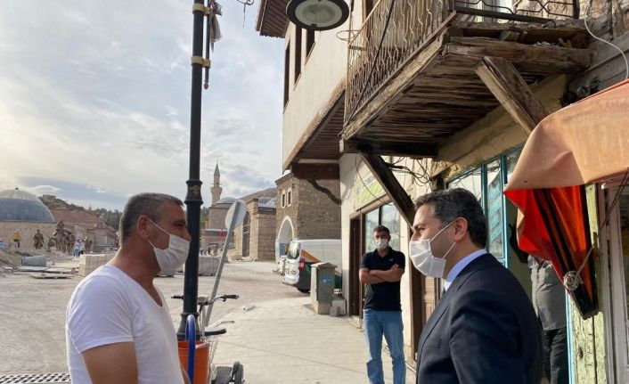 Tokat Belediye Başkanı Eyüp Eroğlu, tarihi Sulu Sokak çarşısında bulunan esnafları ziyaret ederek sohbet etti. Pandemi süreci öncesinde tüm mahalleleri tek tek ziyaret ederek, mahalle sakinlerinin istek ve taleplerine göre çalışma planı oluşturduklarını belirten Başkan Eroğlu, her daim halkla iç içe olmanın gayreti içerisinde olduğunu vurguladı. Tokat’ta ahilik kültürünün yaşatıldığını ifade eden Başkan Eroğlu, “Ahilik geleneğini yıllardır sürdüren ve asırlardır gönlünü ve kapısını halka açık tutan Tokatlı esnaflarımızı ziyaret etmeye onların istek ve taleplerini karşılamaya devam ediyoruz. Göreve geldiğimiz günden itibaren halkımızla iç içe, hemhal olmaya devam ettik. Bugün de Gaziosmanpaşa Bulvarımızdaki ve Erenler Mahallesi’ndeki esnaflarımızı ziyaret ettik” dedi.