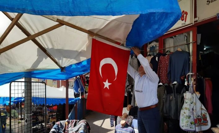 Niksar Belediye Başkanı Özdilek Özcan’ın çağrısının ardından belediye zabıta ekipleri ilçe esnafına bayrak dağıtımı yaptılar. Esnaf ve vatandaşlar evlerini ve işyerlerini bayraklarla donattılar.